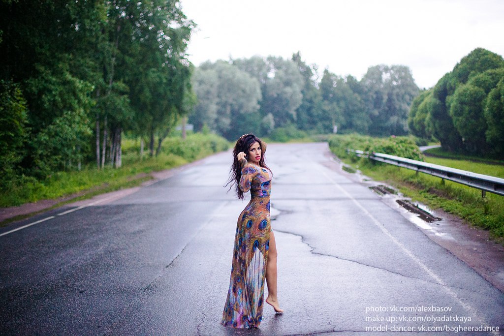 Фотосессия вдоль дороги, глубокое декольте и вырез