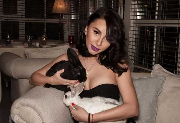 С кроликом, и в ресторанах обедает в откровенных нарядах