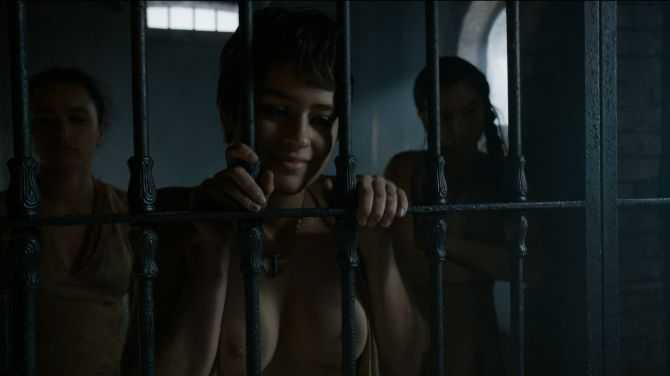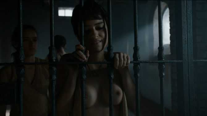 Голая Тиена Сэнд в игре престолов. Она - дочь Оберина и Элларии, появляется в сериале в 5-м сезоне. Тиена вместе с матерью хочет мстить Ланнистерам, оказывается за решёткой, где предстаёт полностью обнажённой